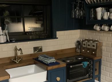The Shepherd’s Hut accommodation is ideal for 2 people. It offers everything you need for a few nights stay, small kitchenette, shower, toilet, cooker, oven, fridge, pots, pans etc.