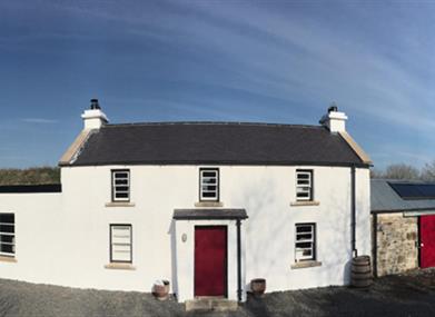 ArDrum is a Grade Two listed vernacular farmhouse located In an idyllic location on the Fermanagh/Donegal border surrounded by stunning rolling hills and forests with wide, uninterrupted views at the end of its own private lane. Fully equipped to the highest standards with a beautiful hand made wooden kitchen with traditional range cooker. Dual aspect lounge with cosy log burner to relax in front of. Luxury bathroom with stand alone roll top bath for soaking in plus a separate shower. Upstairs has two beautiful bedrooms – a romantic double plus a twin room along with a small WC. Large laundry room plus boot room. Piles of private outside space to enjoy. Ideal retreat in a unique luxurious historical dwelling that features a fabulous wildflower meadow on the roof of the original byres. Easy access to the larger cities as well as the local lakes for water sports and hikes along the Ulster Way. Environmentally friendly with underfloor heating keeps traditional flagstones warm underfoot, solar panels, wood burners, plus air source heat pump and its own water supply.