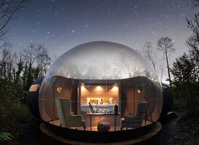 The Forest Domes feature 180° transparent walls allowing you to truly immerse yourself in the beauty and tranquility of nature. Escape the noise of the outside world and enjoy stargazing in comfort for the perfect romantic break in the Fermanagh Lakelands.