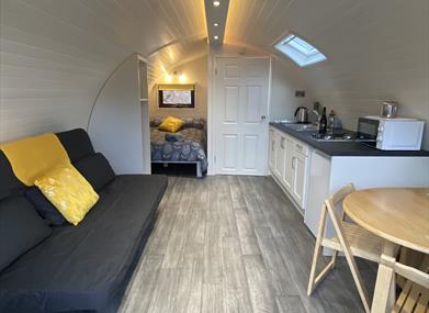 Furnished to the highest standard, all pods sleep 4 adults or 2 adults and 3 children with a comfortable double bed and large sofa bed.Furnished to the highest standard, all our pods are equipped with the following:
