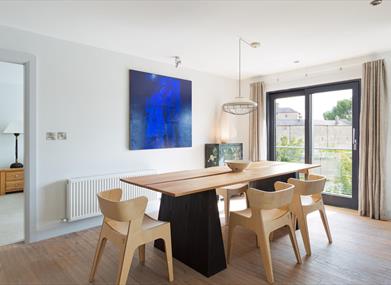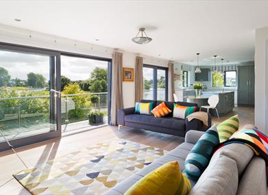 River Cottage sleeps up to 8 guests and features modern, open‑plan living across two floors. It offers 4 spacious bedrooms (2 en suite, 2 with walk‑in wardrobes) along with 2 pull‑out double sofa beds in the downstairs living area for additional guests.