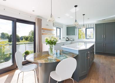 Magnificent picturesque views of Lough Erne and the historical Enniskillen Castle await at Inishclare Cottages – River Cottage, a modern self‑catering holiday home in Enniskillen. Set in a private riverside location within walking distance of Enniskillen town centre, shops, restaurants and pubs, this lakeside cottage is ideal for large families and Fermanagh staycations.