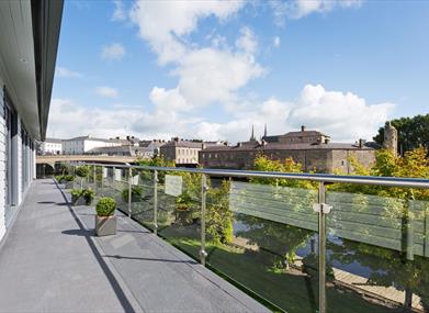 Outside enjoy private decking with scenic views across Enniskillen Castle, barbeque area and seating, also sheltered if raining.