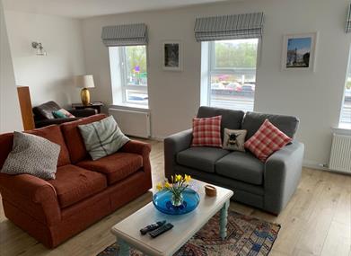 At the very centre of our apartment is a large open plan kitchen,dining and sitting area perfect for family and friends get-togethers. Our location couldn’t be more perfect for restaurants, cafes, shops, castle museum, water activities etc, or simply to sit back and relax and enjoy.