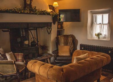 The homely living room will welcome you through the traditional 'half door', with slate flooring and a wood burning stove under an ingle-nook fireplace. This open-plan lounge area includes a smart TV, (with NETFLIX) free Wi-fi, characterful comfy seating, a dining table and chairs, also included are some board games, playing cards and some great reads on the bookshelf.
