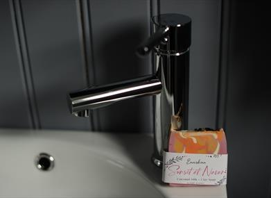 Our en-suite shower room has a washbasin, toilet, cupboard for extra storage, heated towel rail and electric shower, ensuring hot water throughout your stay. Toilet rolls, fresh towels, bathroom mat and two cosy dressing gowns are provided for use in the hut and the hot tub area.