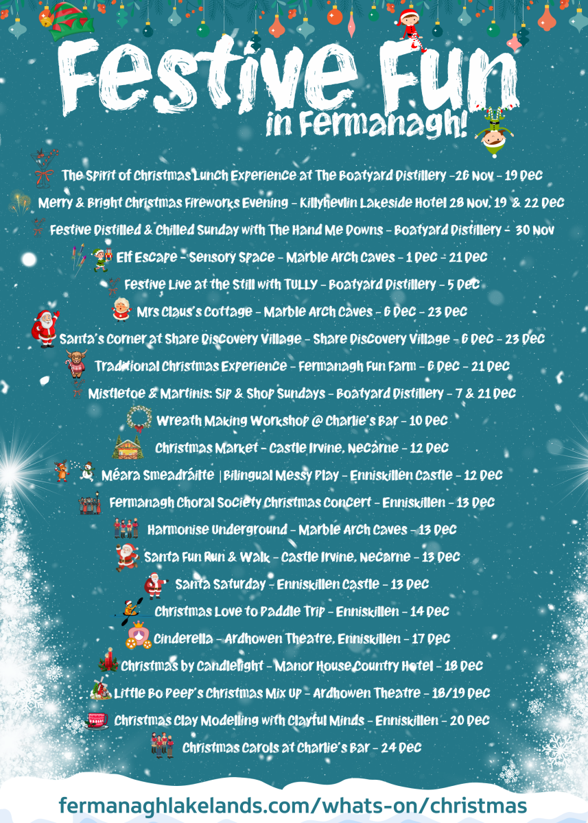 Christmas in the Fermanagh Lakelands is full of festive charm, cosy moments and unforgettable experiences. Here are some of the very best ways to celebrate the season: