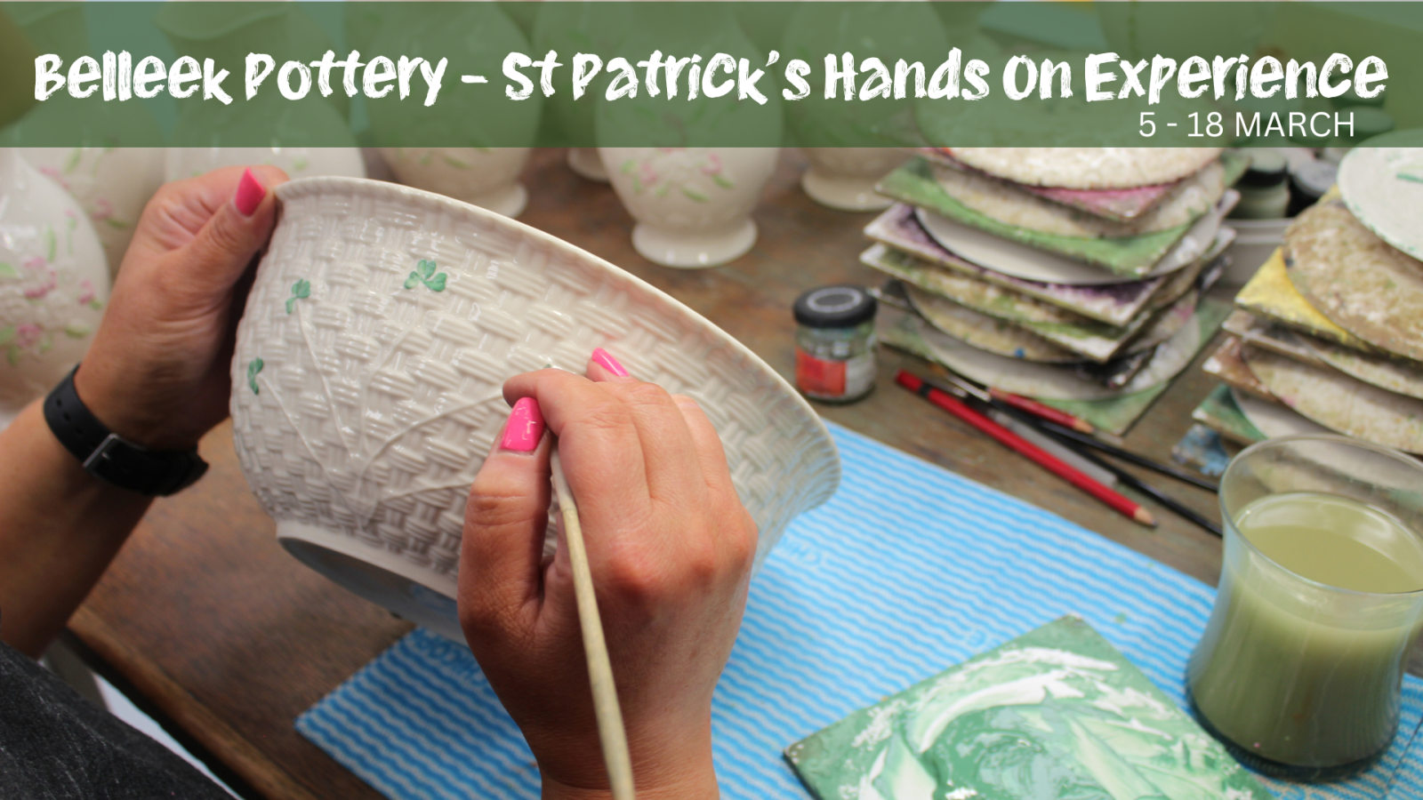 For a limited time only, our Hands On Experience has been transformed into a festive celebration of Ireland’s most iconic symbol. Visitors can now pre‑book and paint their very own shamrock‑themed Belleek piece, creating a keepsake that captures the spirit of the season.