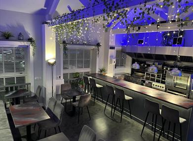 We are a small 20 seat restaurant with a chefs counter and open kitchen.