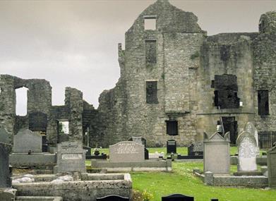 In Lisnaskea, at the edge of the parish graveyard west of the main street, approached through the graveyard.