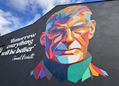 The mural, created by artists Danni Simpson and Karl Fenton (Fenz), features a portrait of Beckett and the quote "Tomorrow everything will be better." It was commissioned to coincide with the renewed Beckett Festival and is located near Enniskillen Royal Grammar School, where Beckett spent his formative years.