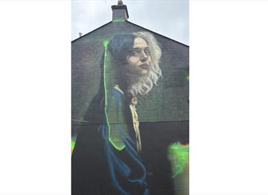 This mural can be found on the side of Belmore Court & Motel. The design incorporates the Cuilcagh Boardwalk, also known as the Stairway to Heaven. Located just outside Enniskillen, the popular boardwalk was the inspiration for this mural.