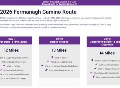 The Fermanagh Camino provides an opportunity to walk for a cause, as all funds raised go directly to Cancer Connect NI. Participants can embark on the full journey or join in for any part, experiencing the beauty of Fermanagh while making a meaningful difference.