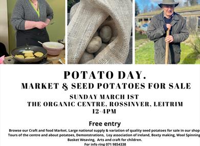 Join the Organic centre for its annual Potato Day on Sunday March 1st, 2026 from 12-4pm. Browse the bustling craft and food market, with local artisan produce. Get planting with the large national supply & variation of quality seed potatoes to choose from. Grab Sunday lunch, with all things potato on the menu of the Grass Roof Cafe. Be inspired with potato themed talks, tours & demonstration's. See how past generations planted with the 'Loy association of Ireland'. The centre is delighted to have talks on food waste and security including the ROSETTA project by Angelo Galatolo, Food Scientist at the Teagasc Food Research Centre. John Brennan from Leitrim Organic Farmers and Talamh Beo to speak about their advocacy work including on food sovereignty and fostering resilient communities. Learn how to plant your own potatoes with head gardener Aaron Mc Gowan, 'Chitting & Chatting'! Enjoy boxty making, hailing from the region with Cavan's v own Paula Heatley. Step back in time for Irish natural crafts, wool spinning & basket weaving and games with Steffi Otto of Heritage Crafts alive. Relax with arts/crafts for the children and live music with the Cleary Family and Mary T. Free Entry on the day.