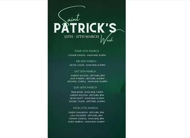 Sunday March 16th - Trad Session, 7.30pm Main Bar /Aaron Wilson, 8-10pm Upstairs/ Sean Swift, 10.30pm, Main Bar and Daniel Taffe, Upstairs, 10.30pm.