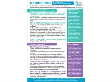 Daniel Figgis played the role of the boy in the famous 1969 Abbey Theatre production of Waiting For Godot, which starred Peter O’Toole and Donal McCann. They also all performed in O’Toole’s interpretation of the play at the Nottingham Playhouse. Daniel also had a successful film and television career as a child/young actor. In conversation with Jane Coyle, he reflects on his memories of that Godot production, of his early acting life and of the actors and directors he worked with. Daniel will be joined on stage by two of the local boys who performed in the Happy Days festival’s presentations of Waiting for Godot.